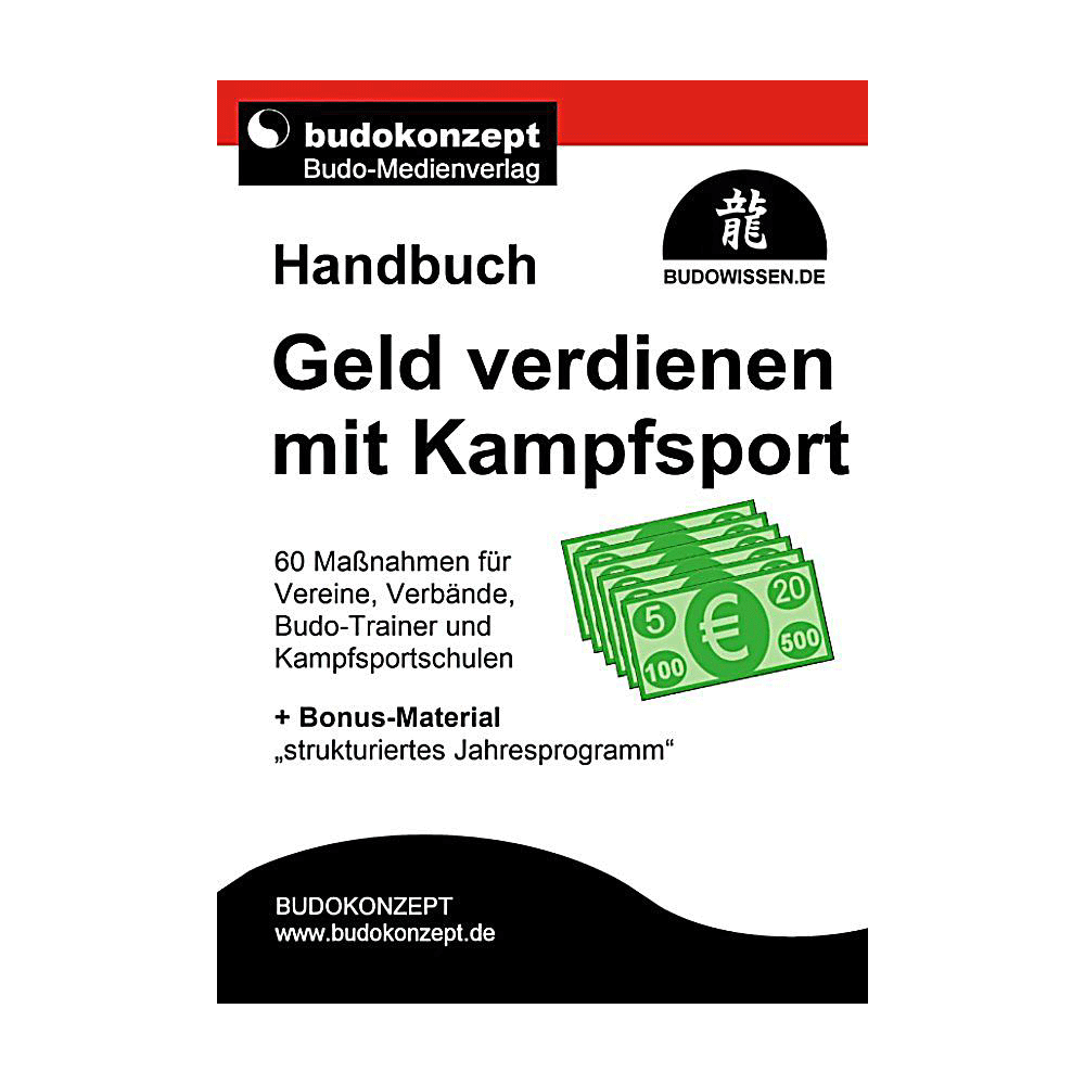 Das Handbuch "Geld verdienen mit Kampfsport" befasst sich mit der Frage, wie man mit seinem Hobby Geld verdienen kann, wie man als Trainer oder mit einer Kampfsportschule Erfolg hat, aber auch wie man für Vereine und Verbände die erforderlichen Einnahmen erzielt und steigert.